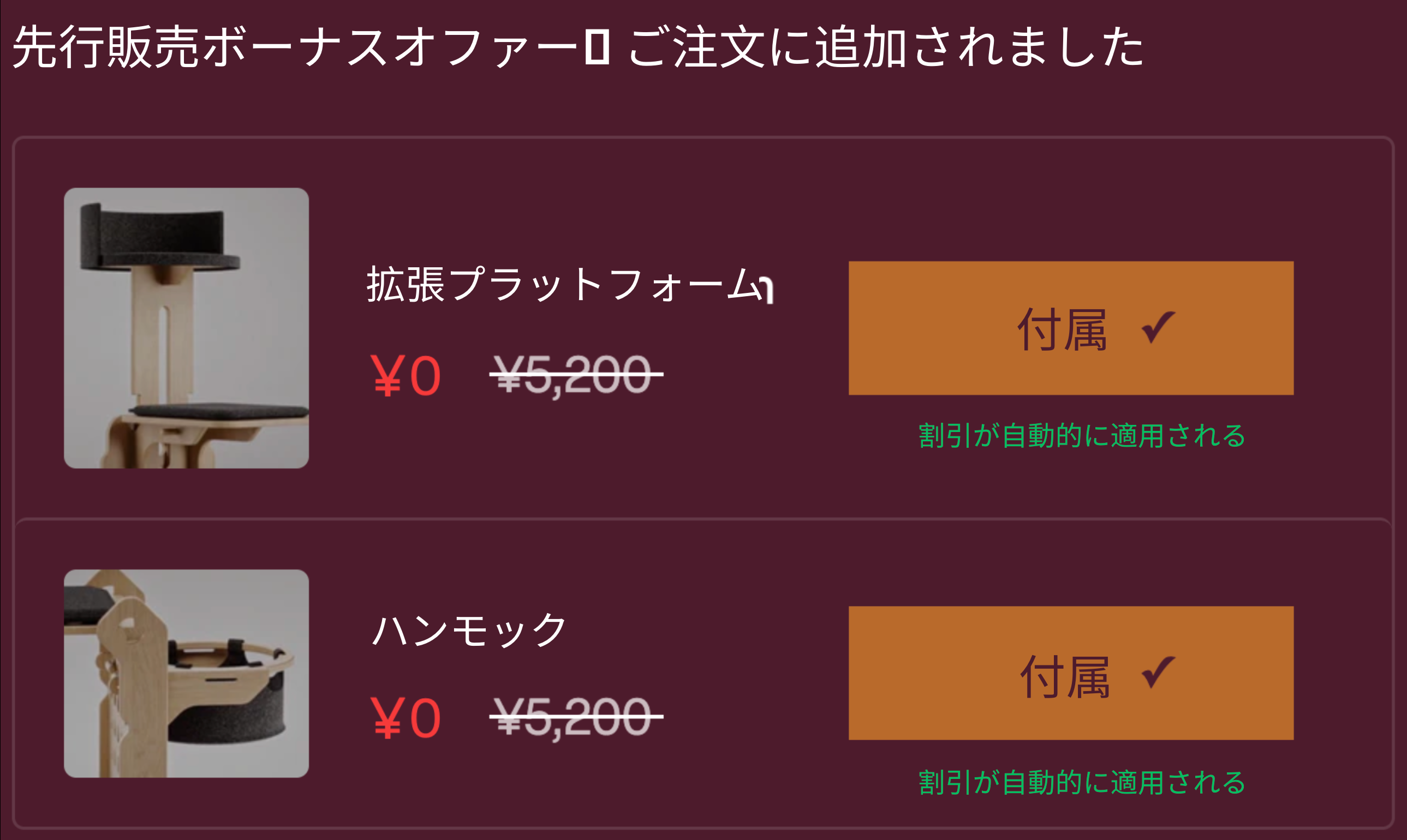 プレセール特典として、無料アクセサリー2点(フェルト製ハンモック、ベルベット素材のクッション付きトップ拡張プラットフォーム)をお付けします。これらは別箱でフラット梱包され、簡単な組み立てツールと手順書が同封されています。